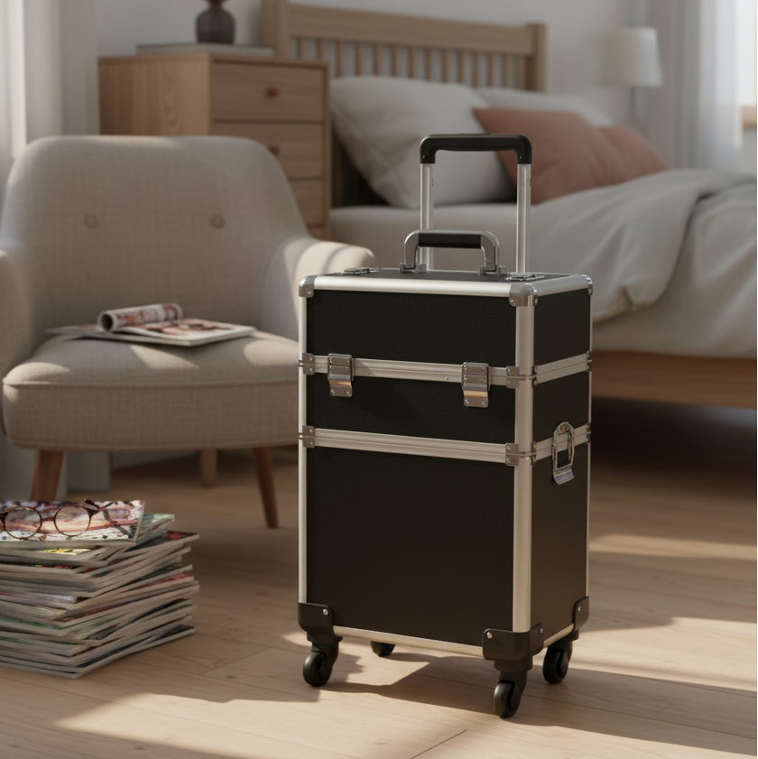 MALETA PARA COSMÉTICOS CON RUEDA Y 2 COMPARTIMIENTOS